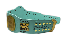 Hogan’s Beach Shop Turquiose Replica Winged Eagle WWE Championship Title Belt Signed Too “Bucky”
